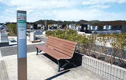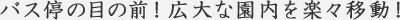 鎌倉霊園内20ヶ所の停留所をめぐる無料バスが運行。新区画のすぐ目の前にも停留所がございます。路線バスやタクシーでお参りにお越しの方に便利です。