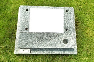 この区画はあらかじめ欧風のプレート型墓石が設置されていて、この墓石の上に家名などを彫刻した表示板(自己負担)を取り付けるかたちになっています。