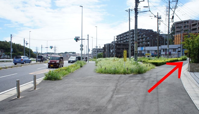 登り坂を上がると二股に分かれるので右方面へ。なお「舞岡しぜん墓園」予定地までは、お店などないため、何かご入用な場合は、駅近のコンビニで済ませておくことをお薦めします。