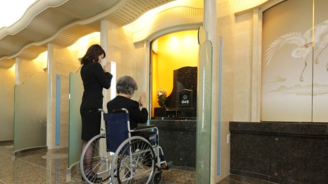 会員カードを呈示すると、ご遺骨を納めた厨子(ずし)が運ばれてくる最新スタイル。