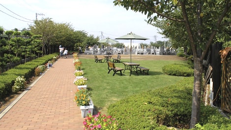 霊園内へ入ると、緑の芝と四季折々の美しい花々が目に入ってきます。