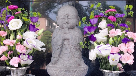 納骨堂・永代供養墓には毎日のように参拝者が訪れており、いつも沢山のお供えの花に囲まれています。