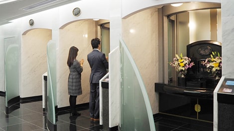参拝室はひとつひとつ仕切られていて、周りに気兼ねなくゆっくりとお墓参りいただけます。