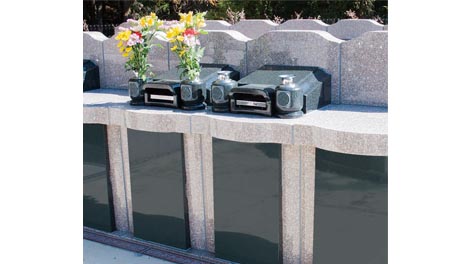 明るいピンク色の御影石で造られた永代供養墓「ひので永遠の郷」。お一人様からご利用いただけます。
