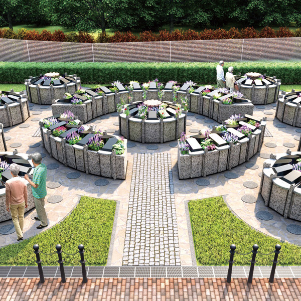 墓石一式(基本彫刻含む)、永代使用料、法名(戒名)、永代供養、管理料、最終使用者が亡くなってから15年後の墓地返還料及び供養塔への改装料を含む。
