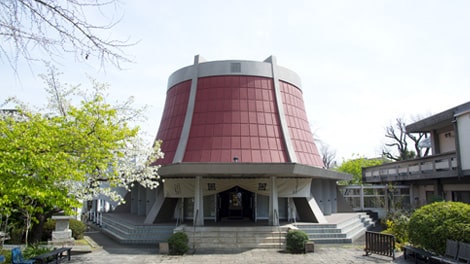 1966年に建造された、形状が印象的な本堂。