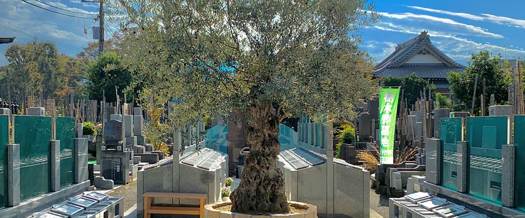 樹齢300年のオリーブの木が優しく包んでくれる樹木型墓地